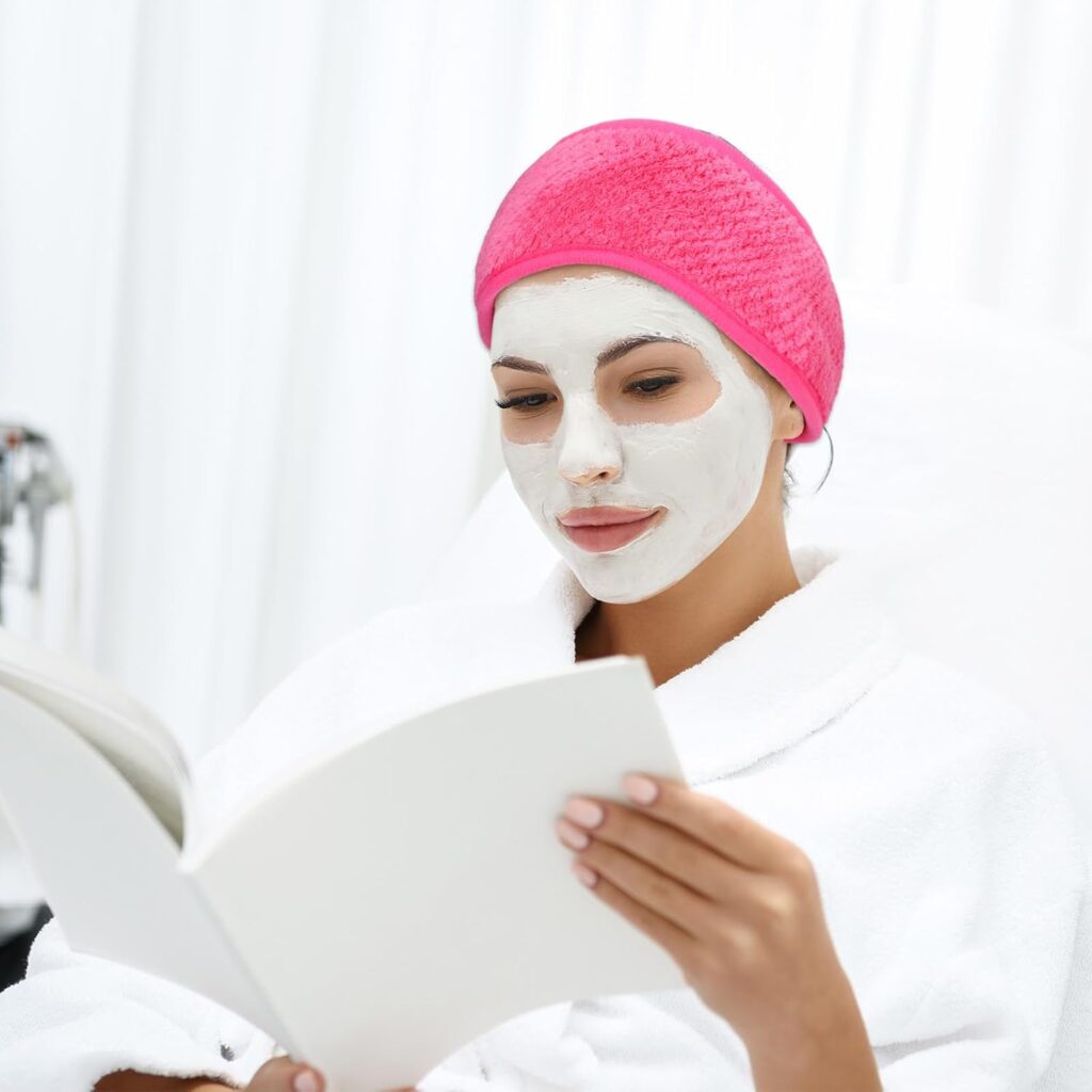 Headbands are nice to keep your hair away whale you do your facial routine.